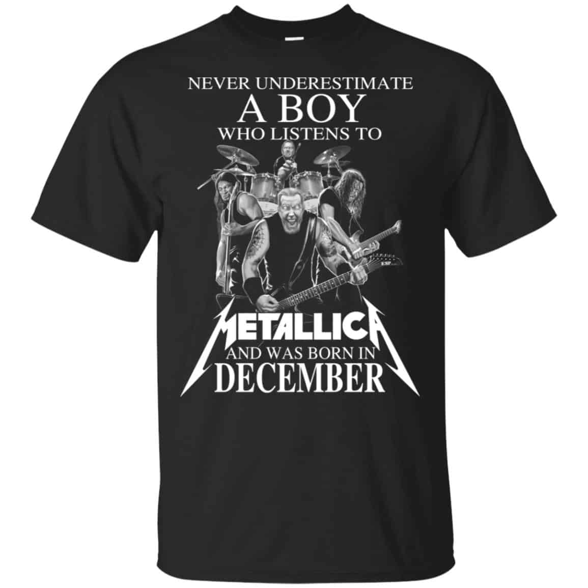 A Boy Who Listens To Metallica And Was Born In December TShirts, Hoodie, Tank For Women’s Or Men’s Size S, M, L, XL,2XL,3XL,4XL, and 5XL 100% combed ring-spun cotton UNISEX T-shirt available for men or women and printed onto super soft 100% cotton t-shirts (heather grey and dark heather grey are a 90/10 and 60/40 cotton and polyester blend).