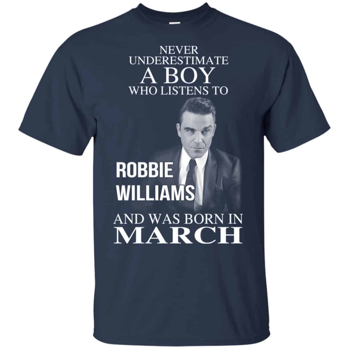 A Boy Who Listens To Robbie Williams And Was Born In March T-Shirts, Hoodie, Tank