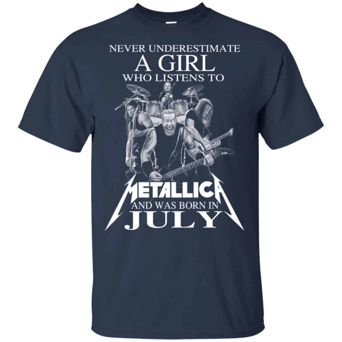 A Girl Who Listens To Metallica And Was Born In July TShirts, Hoodie, Tank For Women’s Or Men’s Size S, M, L, XL,2XL,3XL,4XL, and 5XL 100% combed ring-spun cotton UNISEX T-shirt available for men or women and printed onto super soft 100% cotton t-shirts (heather grey and dark heather grey are a 90/10 and 60/40 cotton and polyester blend).