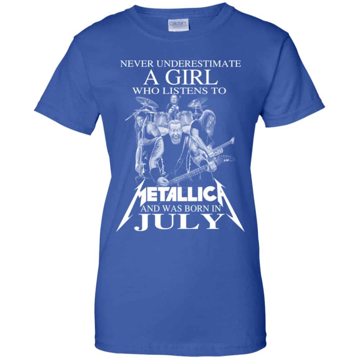 A Girl Who Listens To Metallica And Was Born In July Shirts, Hoodie, Tank For Women’s Or Men’s Size S, M, L, XL,2XL,3XL,4XL,5XL