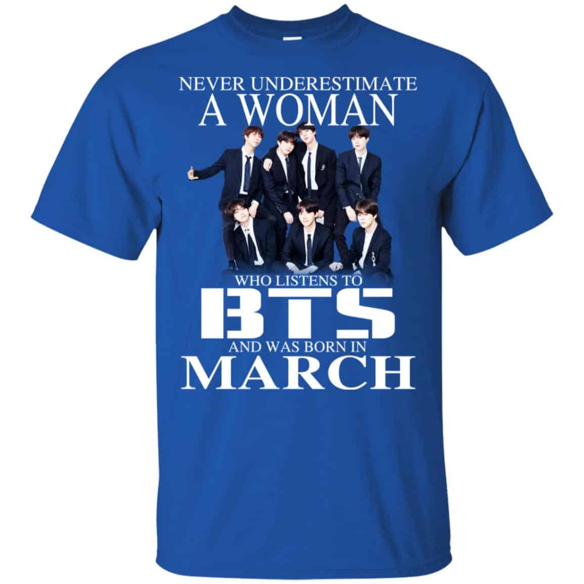 A Woman Who Listens To BTS And Was Born In March T-Shirts, Hoodie, Tank
