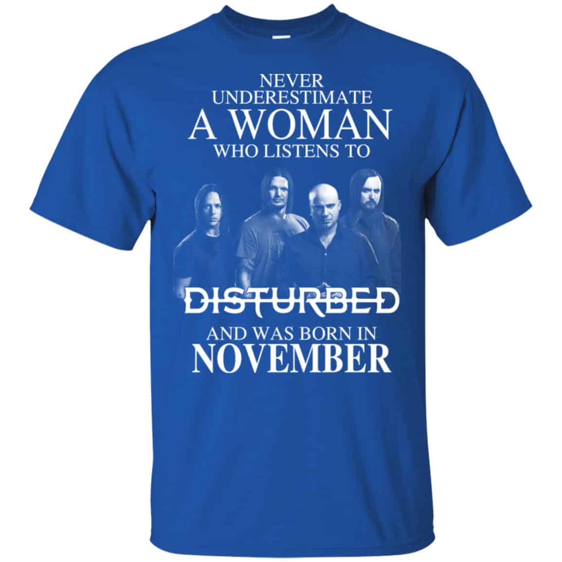 A Woman Who Listens To Disturbed And Was Born In November T-Shirts, Hoodie, Tank
