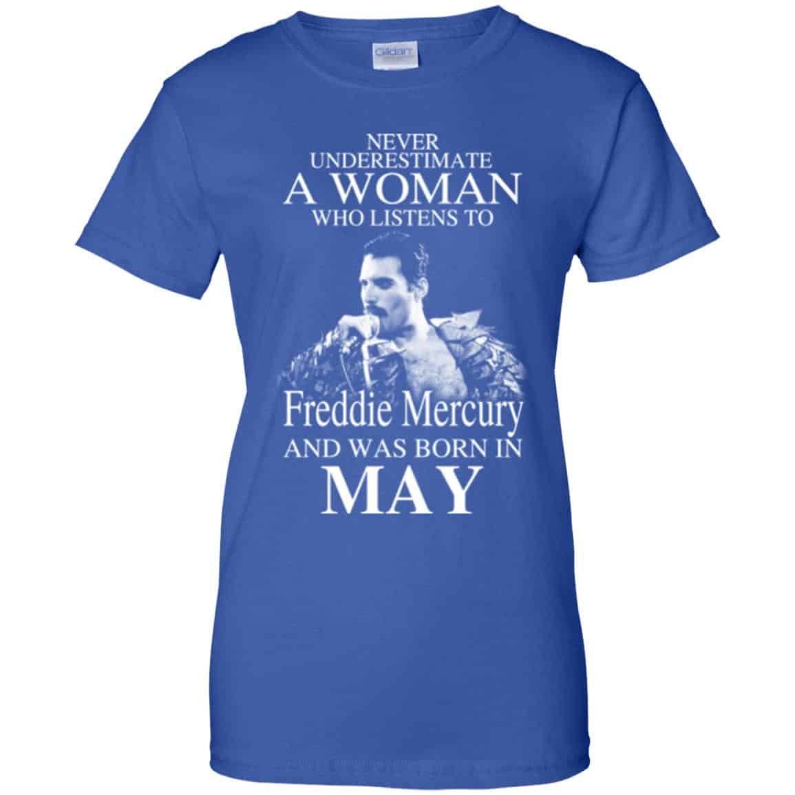 A Woman Who Listens To Freddie Mercury And Was Born In May T-Shirts, Hoodie, Tank