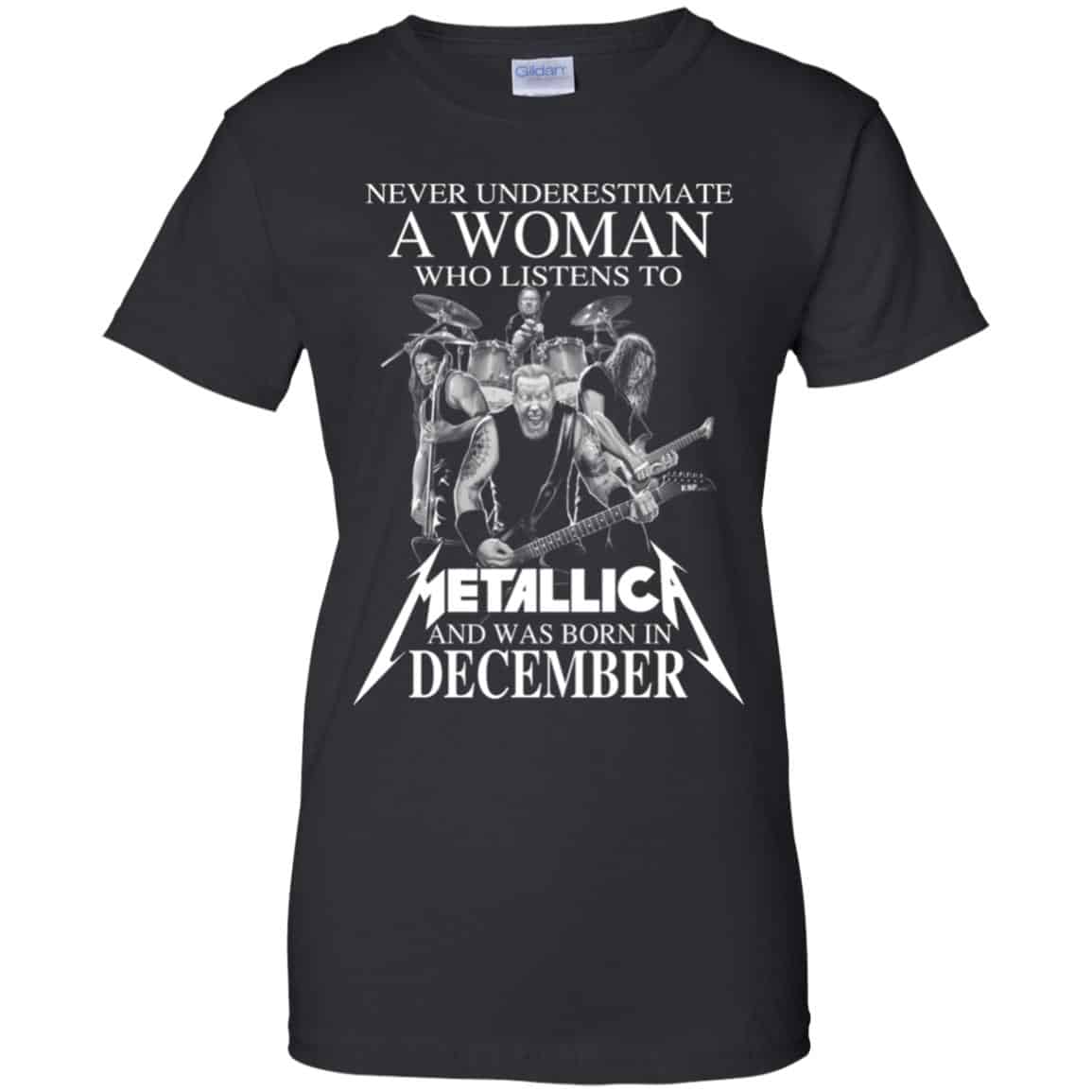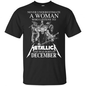 A Woman Who Listens To Metallica And Was Born In December T-Shirts, Hoodie, Tank For Women’s Or Men’s Size S, M, L, XL,2XL,3XL,4XL,5XL