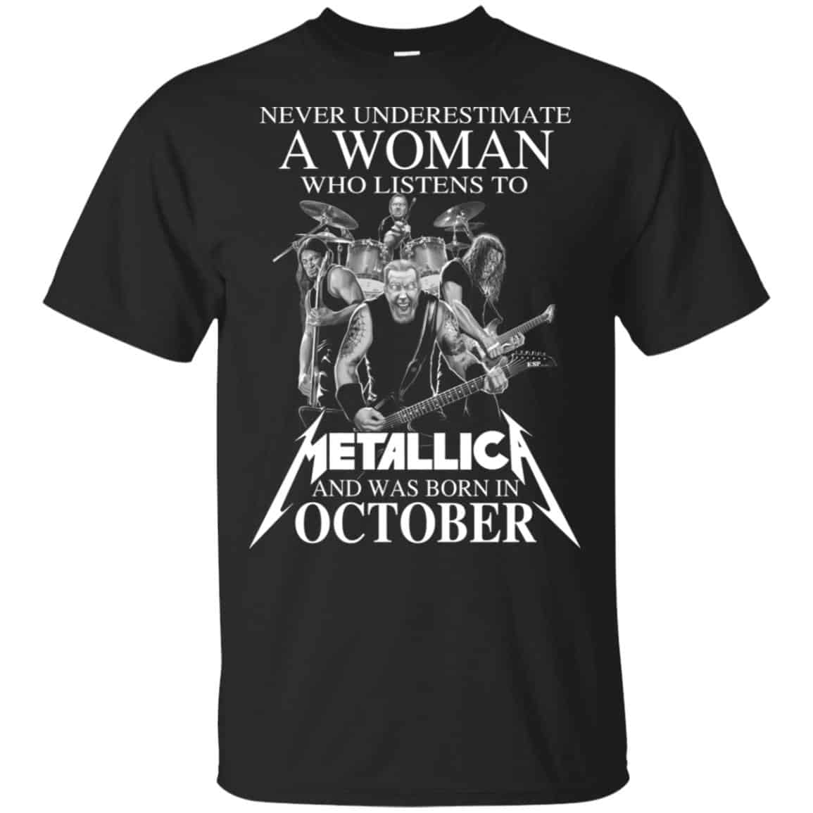 A Woman Who Listens To Metallica And Was Born In October T-Shirts, Hoodie, Tank For Women’s Or Men’s Size S, M, L, XL,2XL,3XL,4XL,5XL