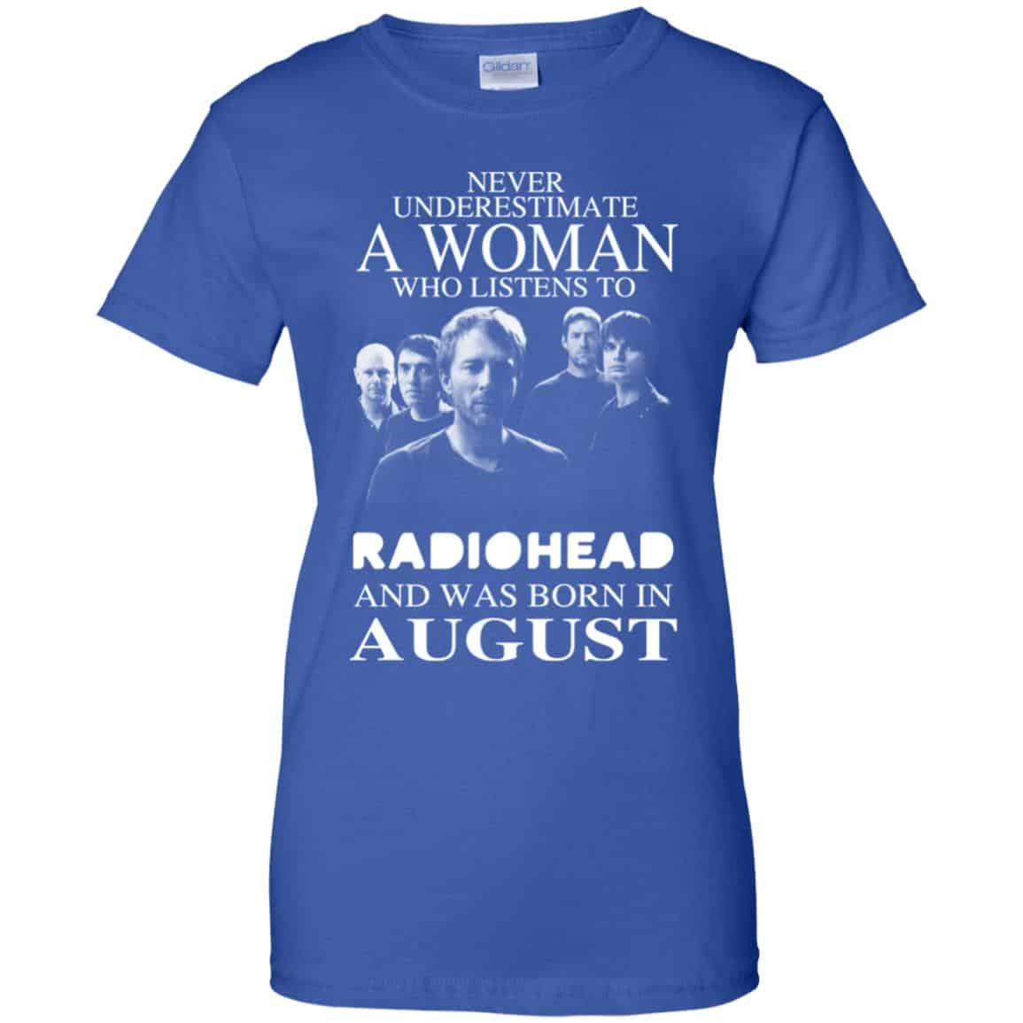 A Woman Who Listens To Radiohead And Was Born In August T-Shirts, Hoodie, Tank