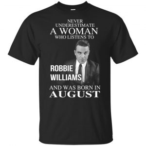 A Woman Who Listens To Robbie Williams And Was Born In August T-Shirts, Hoodie, Tank