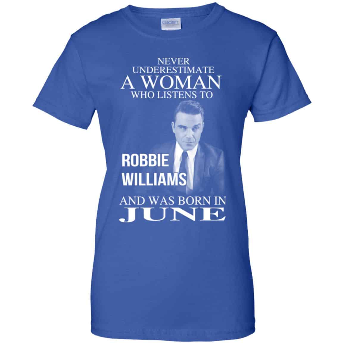 A Woman Who Listens To Robbie Williams And Was Born In June T-Shirts, Hoodie, Tank
