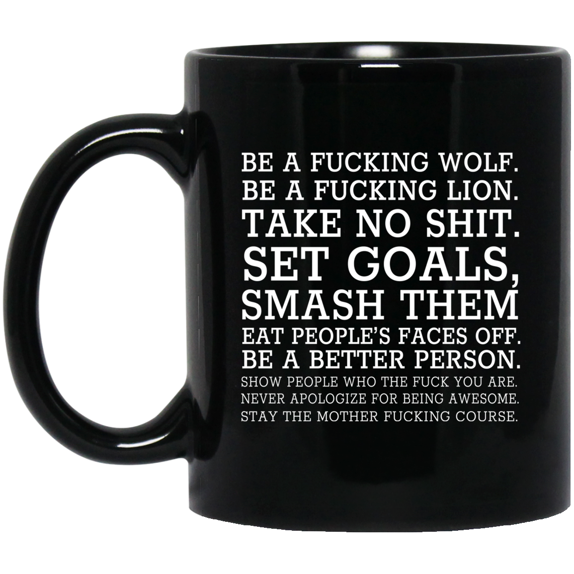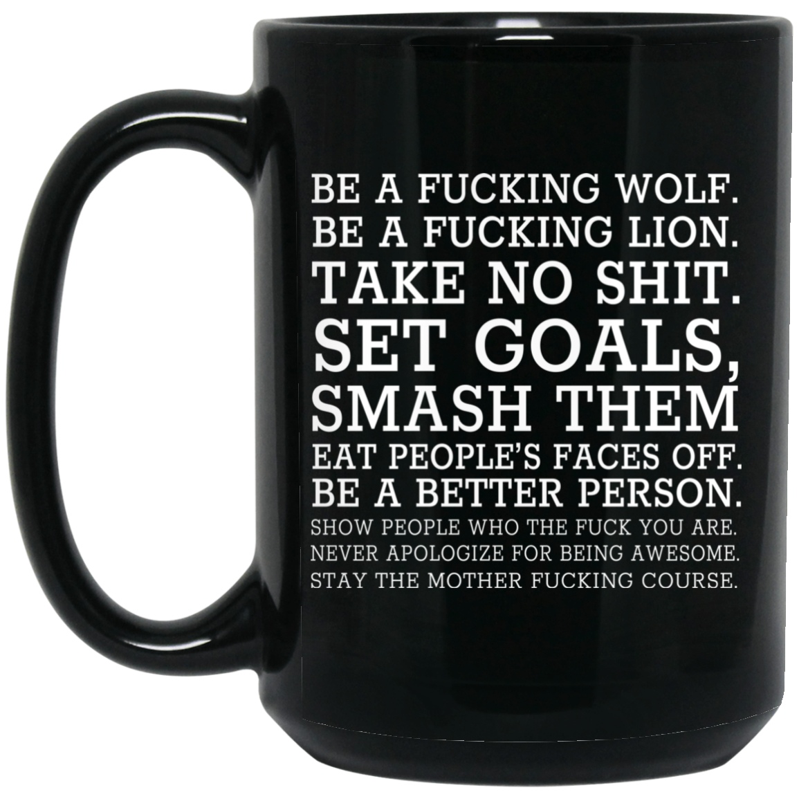 Be A Fucking Wolf Be A Fucking Lion Take No Shit Set Goals Smash Them Eat People’s Faces Off Mug