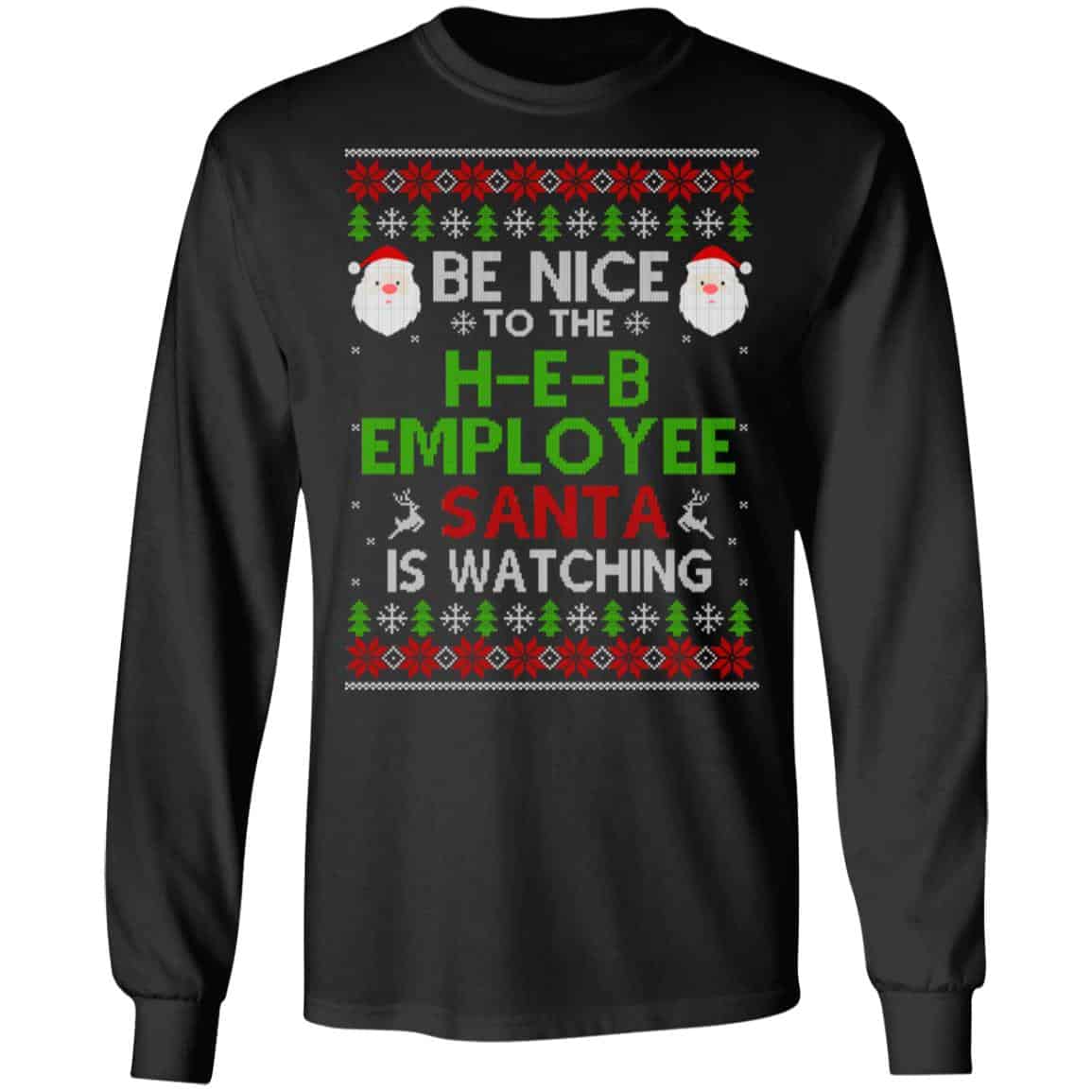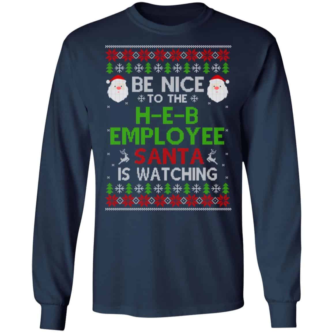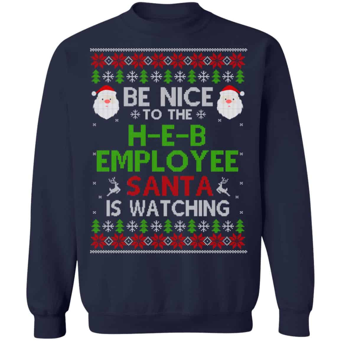 Be Nice To The H-E-B Employee Santa Is Watching Christmas Sweater, Shirt, Hoodie