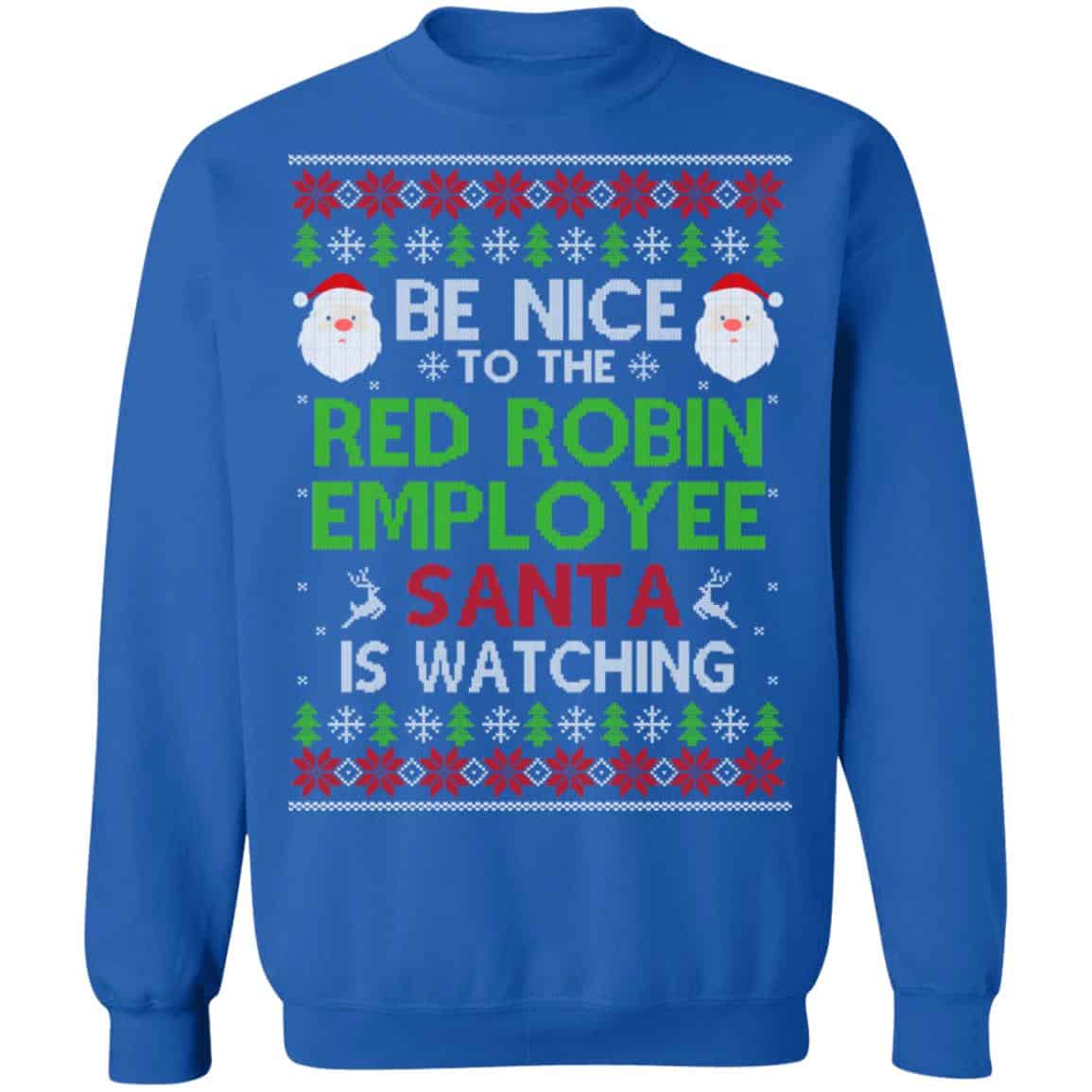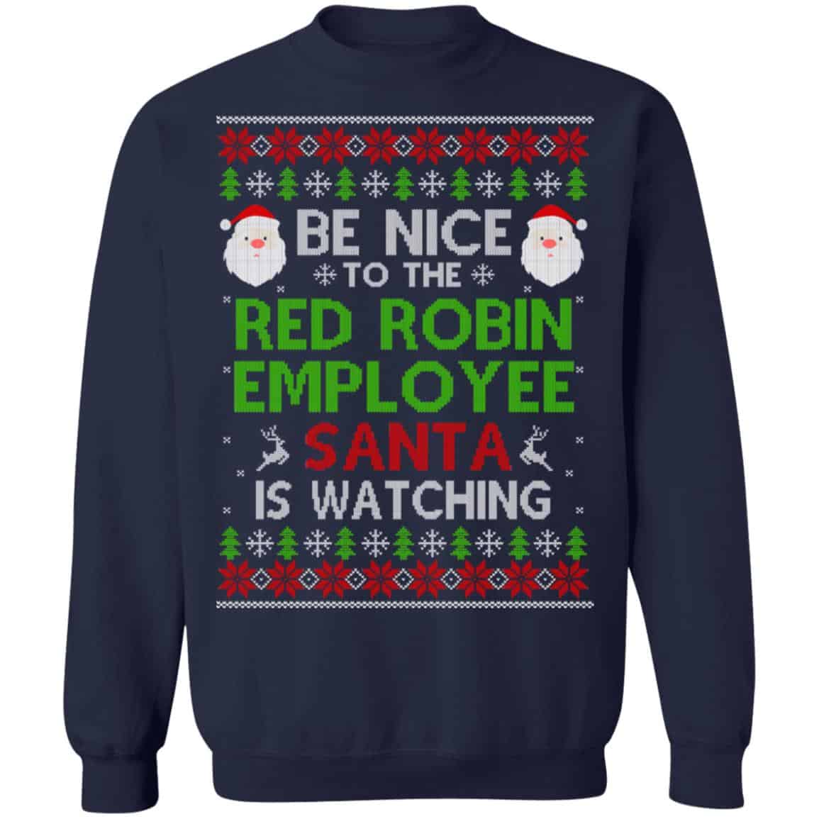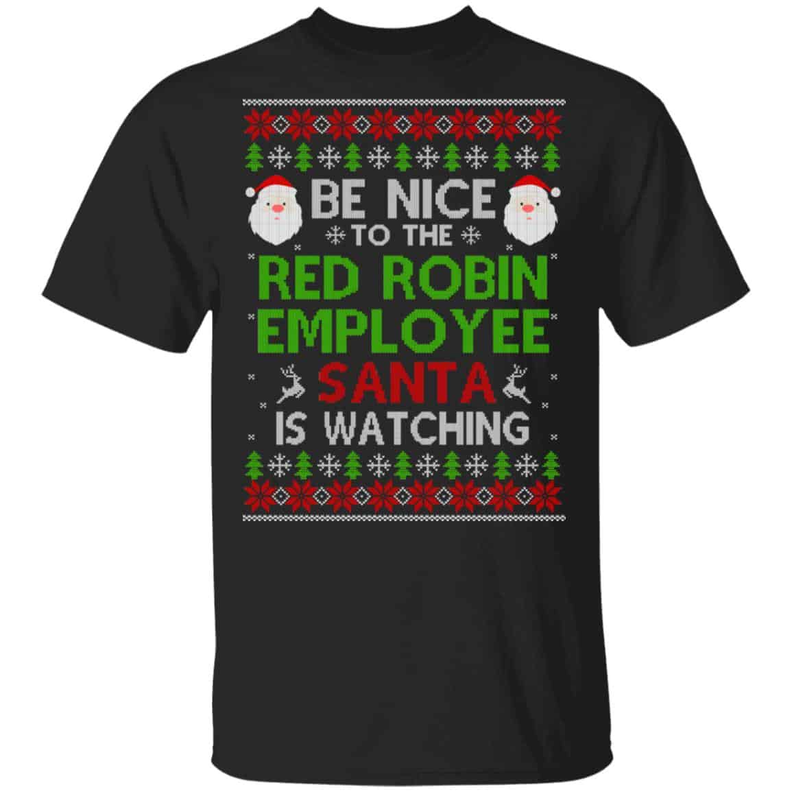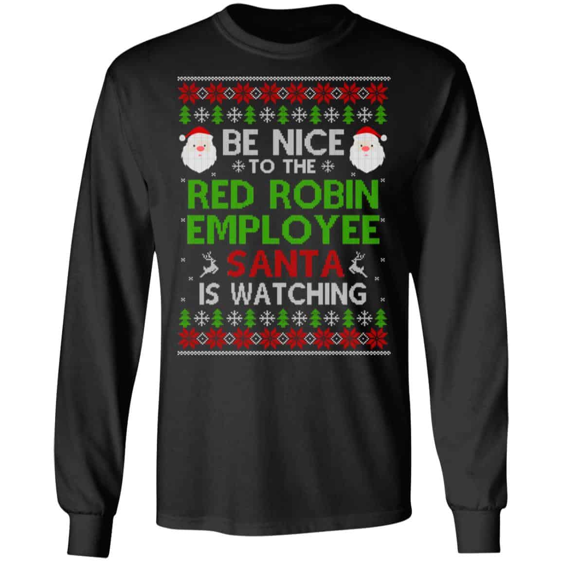 Be Nice To The Red Robin Employee Santa Is Watching Christmas Sweater, Shirt, Hoodie