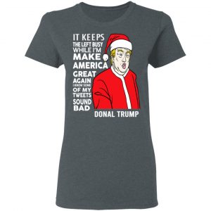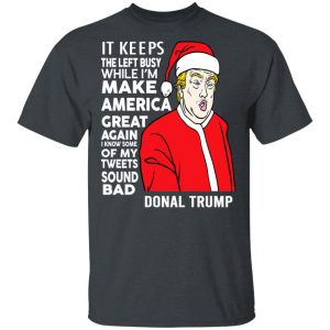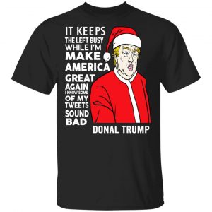 Donald Trump It Keeps The Left Busy While I’m Make America Great Christmas Shirt, Hoodie, Tank