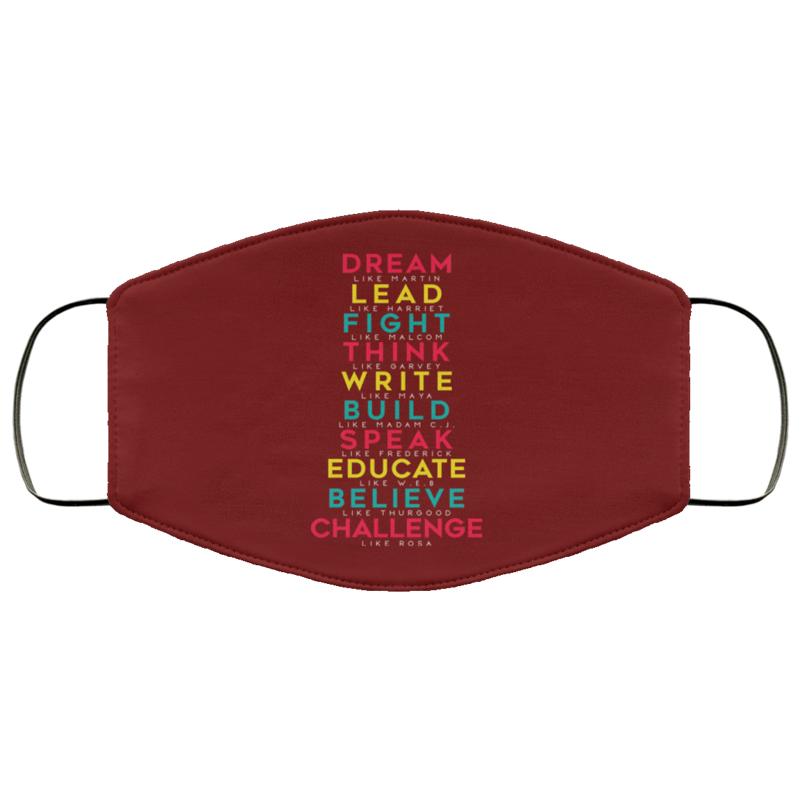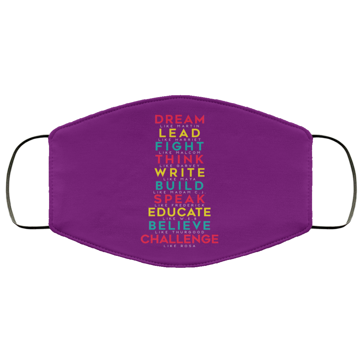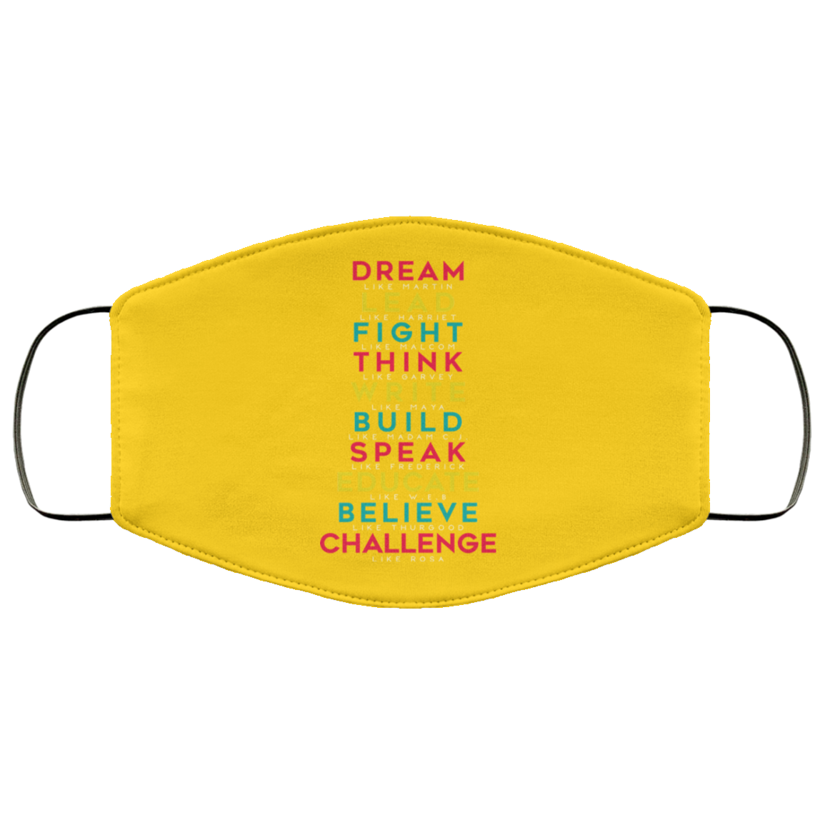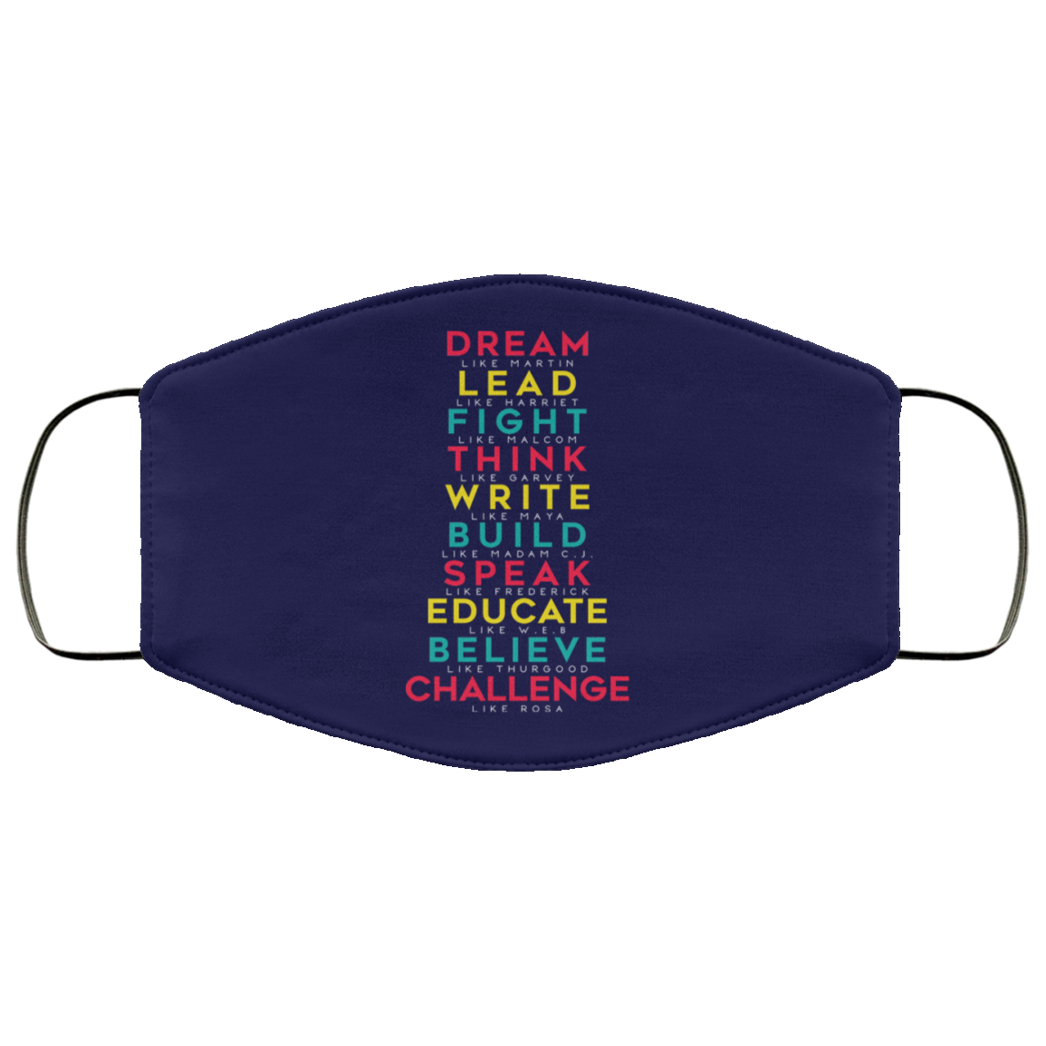 Dream Like Martin Lead Like Harriet Fight Like Malcom Think Like Garvey Face Mask