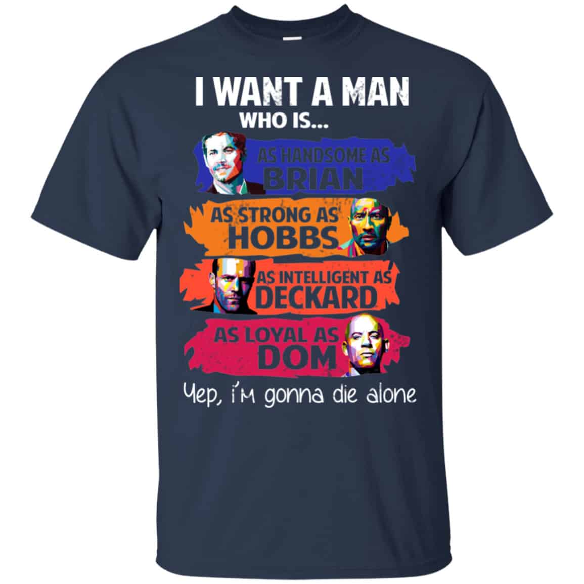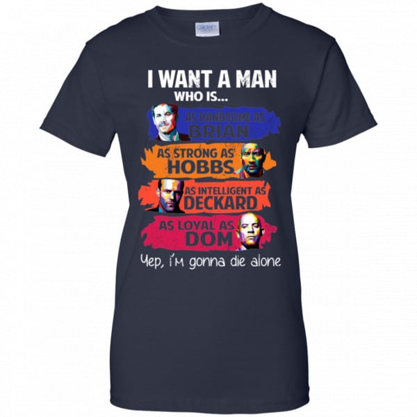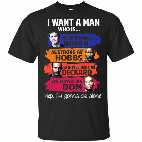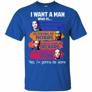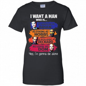 I Want A Man Who Is As Handsome As Brian As Strong As Hobbs As Intelligent As Deckard As Loyal As Dom Shirt, Hoodie, Tank