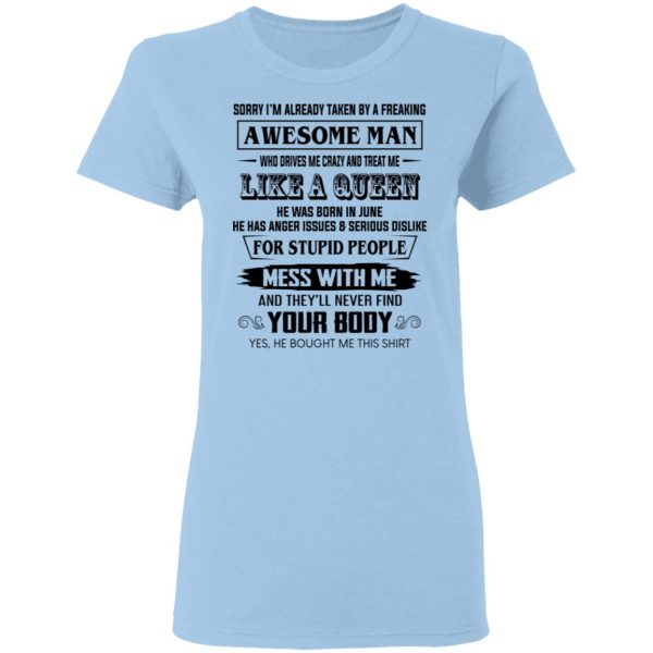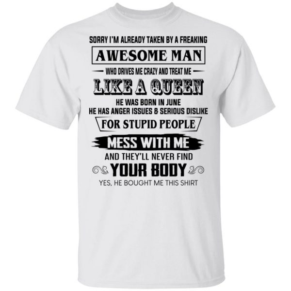 I’m Already Taken By A Freaking Awesome Man Who Drives Me Crazy And Born In June Shirt, Hoodie, Tank