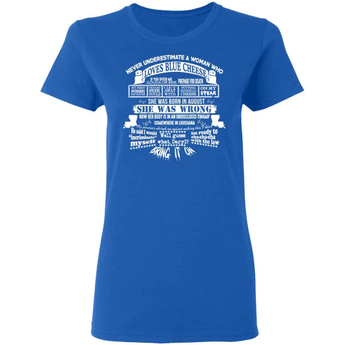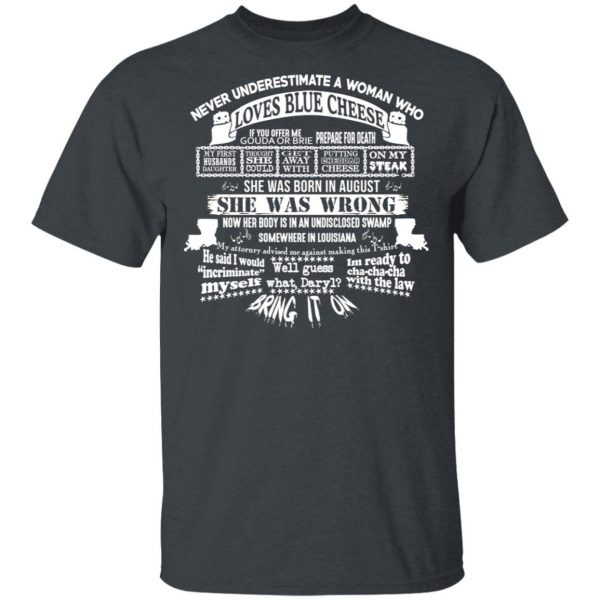 Never Underestimate A Woman Who Loves Blue Cheese And Was Born In August Shirt, Hoodie, Tank