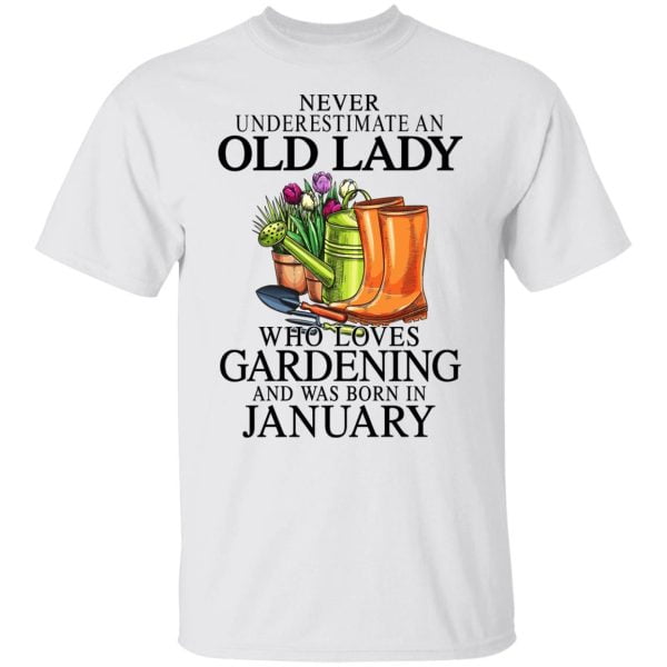 Never Underestimate An Old Lady Who Loves Gardening And Was Born In January Shirt, Hoodie, Tank
