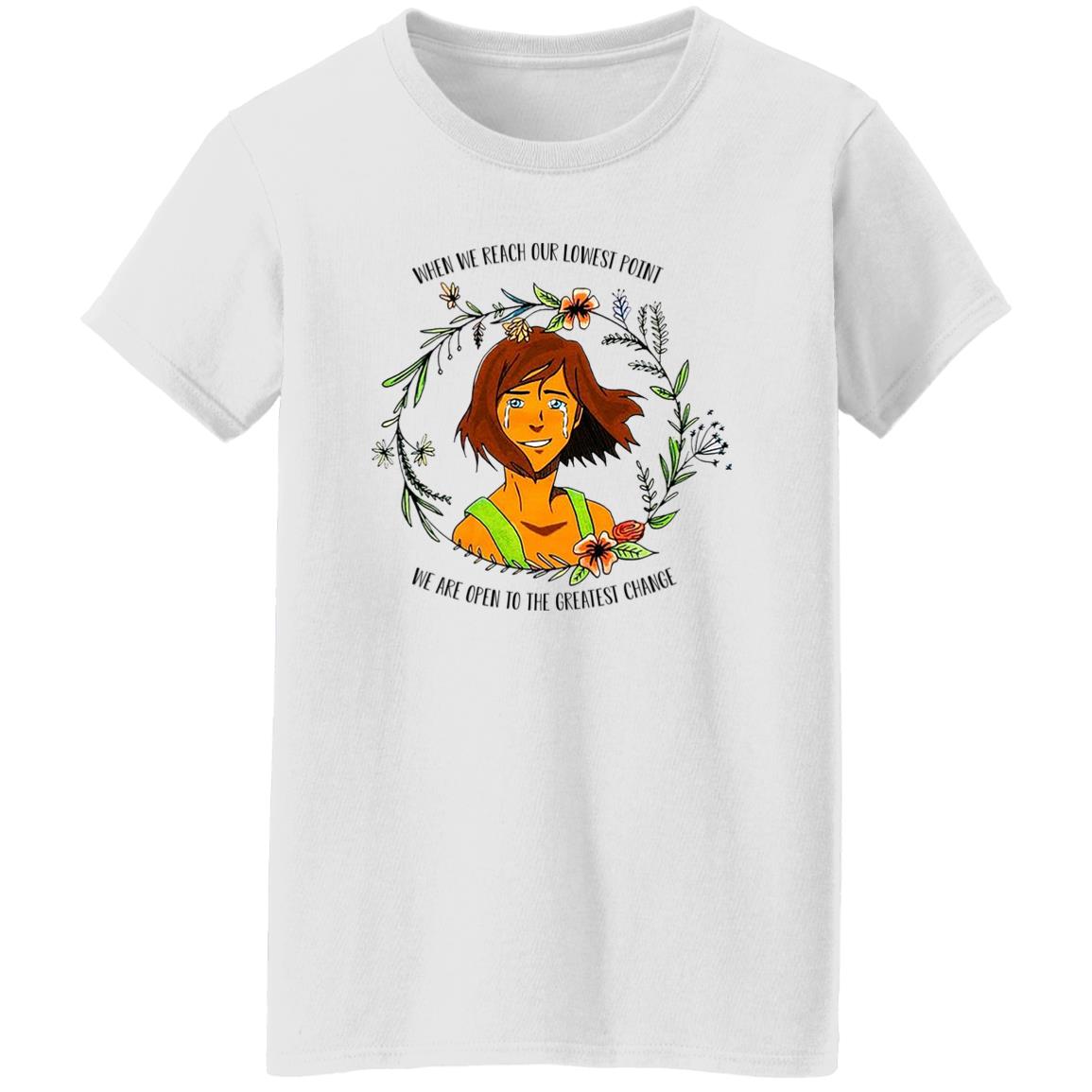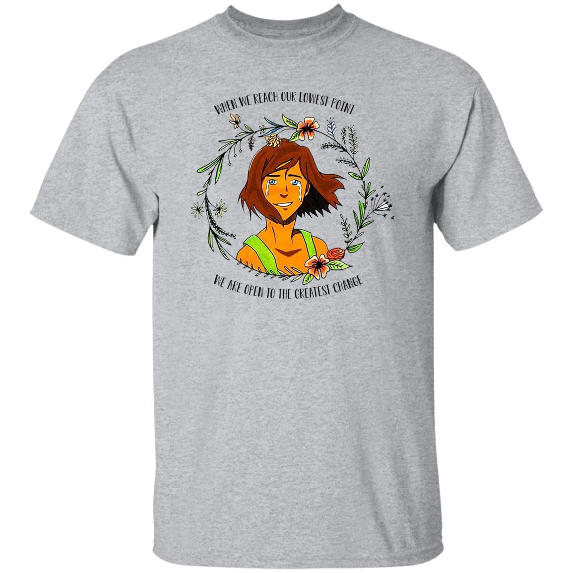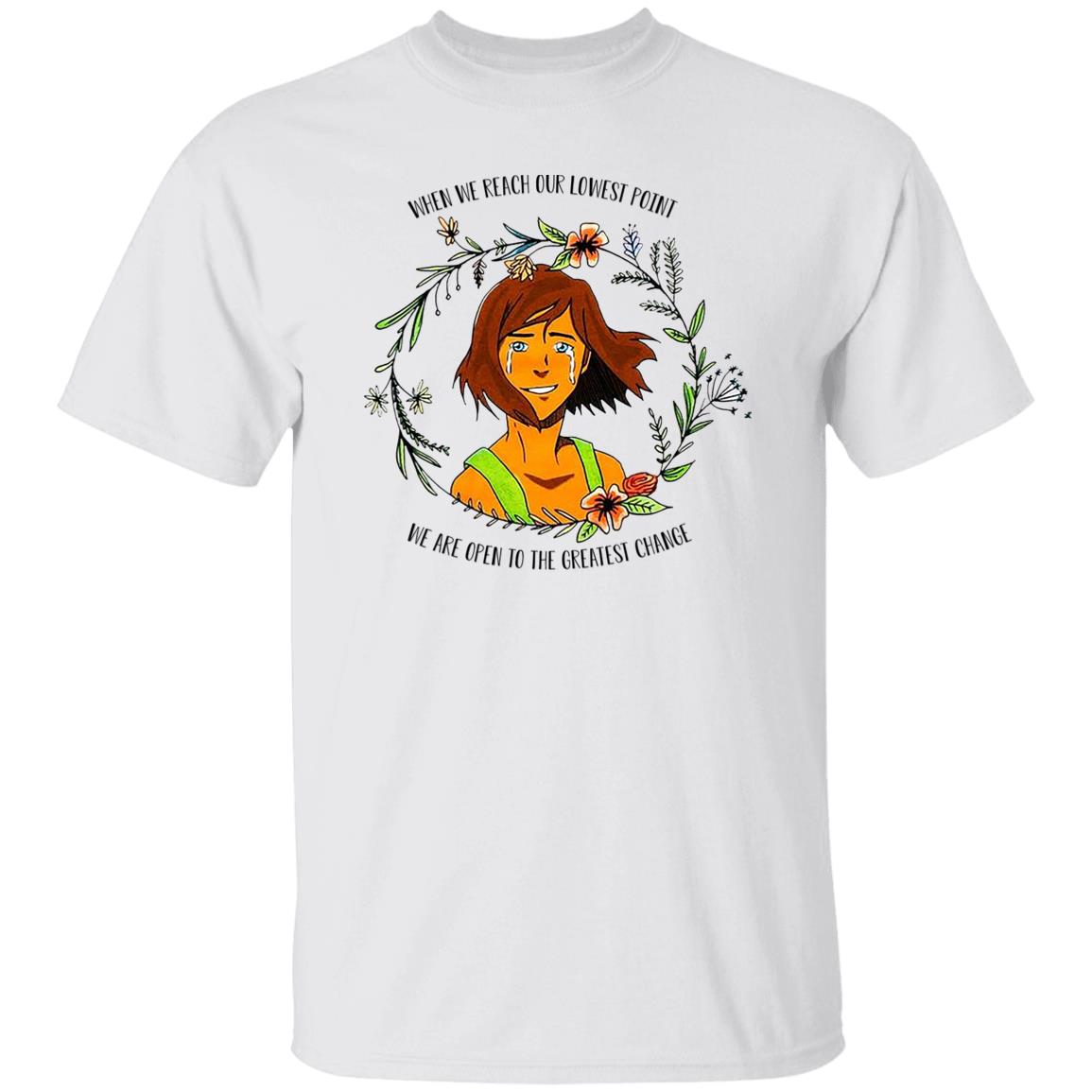 The Legend of Korra Floral Quote When We Reach Our Lowest Point We Are Open To The Greatest Change Shirt, Hoodie, Tank