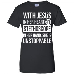 With Jesus In Her Heart And Stethoscope In Her Hand She Is Unstoppable T-Shirts, Hoodie, Tank